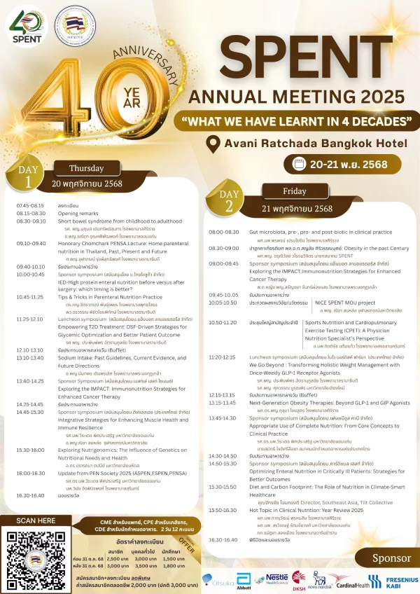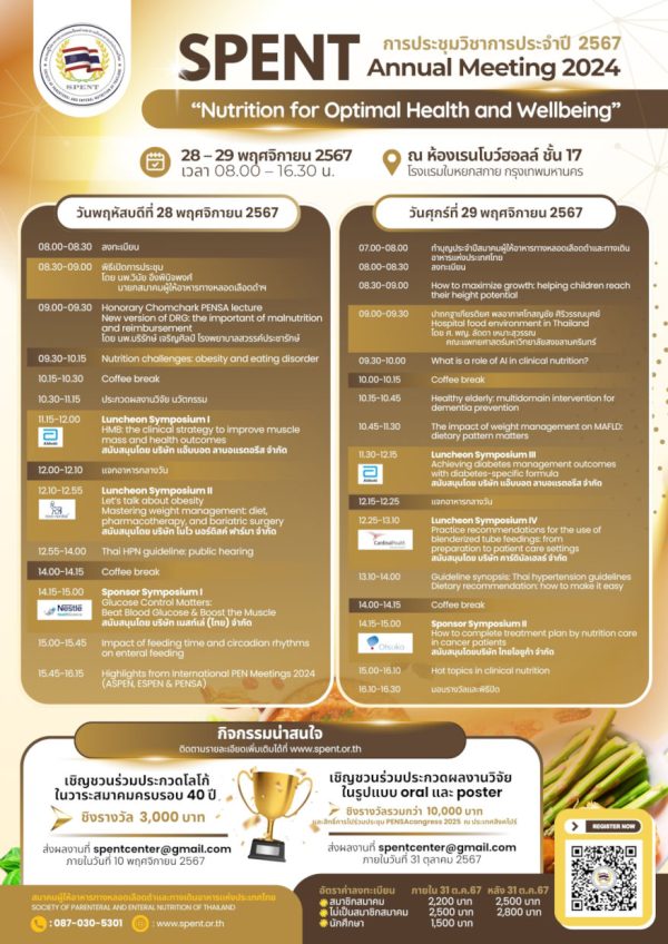 วันที่ 20 – 21 พฤศจิกายน 2568 เวลา 08.00 – 16.30 น. ณ ห้อง grand diamond ชั้น 3 โรงแรมอวานีรัชดา กรุงเทพฯ